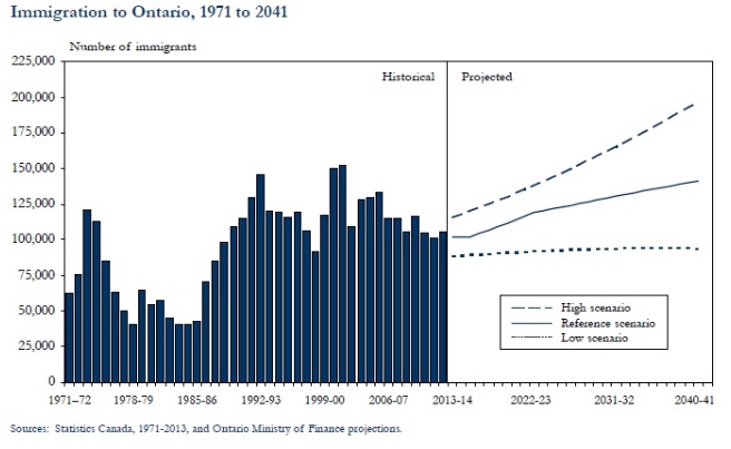 自2007年以来,联邦移民政策发生了变化,主要是通过省提名计划的扩大,希望在全国范围更均匀地分布在移民。这样一来,安大略省在全国移民的总份额已经从2006-07年的e48.5%降至2012-13年的40.2%的2012-13年。同期,安省的移民率较上年同期从0.9%下降到不足0.8%。